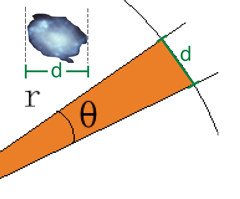 1. We know that the angular size of a distant object is rather small and that it is some fraction of the circle explained above. The measure d shown below represents the physical size of the astrophysical object of interest. Note that the length of the perimeter of the circle is called the circumference, and is defined as,